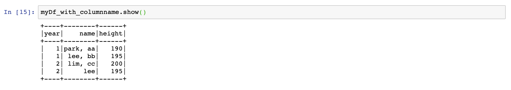 마찬가지로 생성한 dataframe을 .show()를 통해 확인해보자.