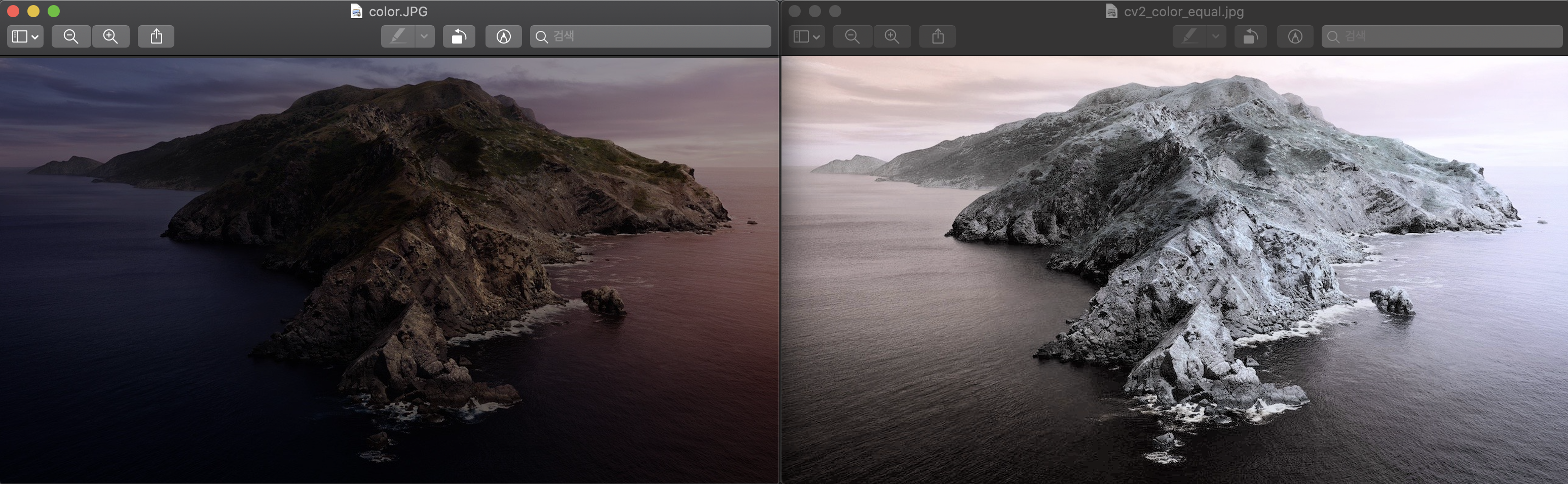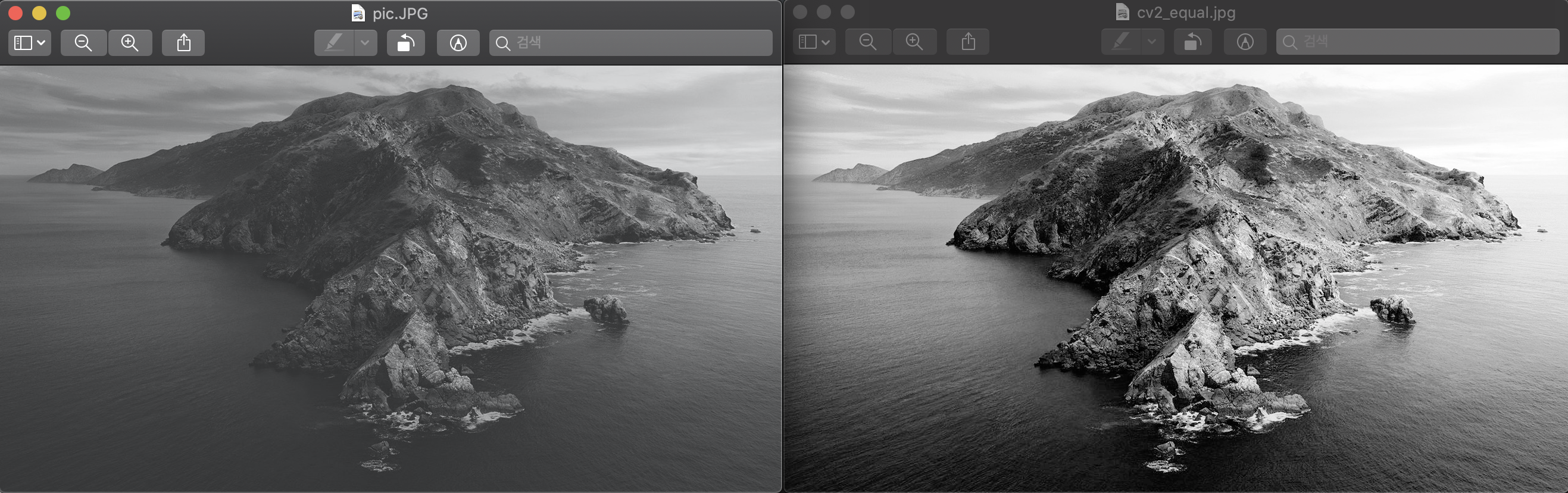 왼쪽은 원본 사진, 오른쪽은 equalize 시킨 사진입니다.
