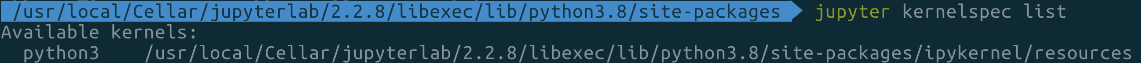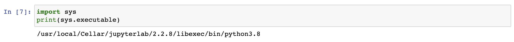 현재 brew를 통해 설치된 python3가 아닌 jupyterlab 안의 python을 사용중인 것을 확인 할 수 있다.