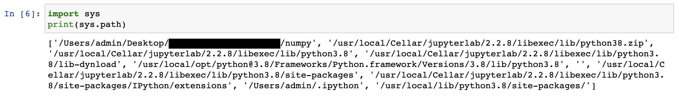 이후 환경변수가 제대로 추가 되었는지 jupyter에서 sys.path 명령어를 통해 확인해 보도록 하자.