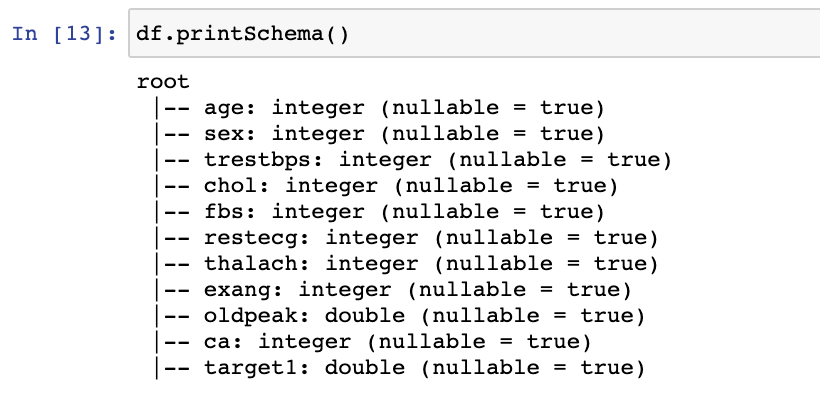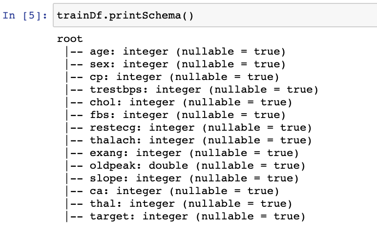 현재 trainDf의 schema는 다음과 같습니다.
