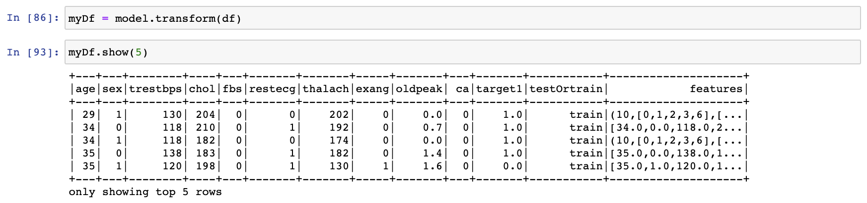 만든 모델에 생성되어 있는 DataFrame인 df를 넣어서 feature column이 생성되어 있는 myDf를 생성해 주도록 하겠습니다.