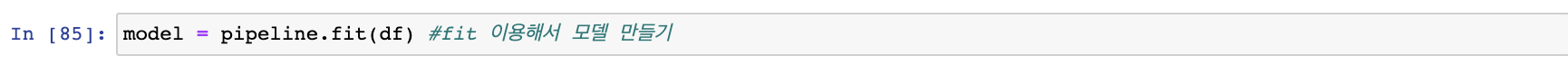 이제 생성된 모델에 trainDf를 fit() 해 주도록 하겠습니다.