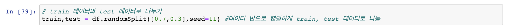 이후 dataframe df를 test 데이터와 train 데이터로 7:3 비율로 나누어 주도록 하겠습니다.