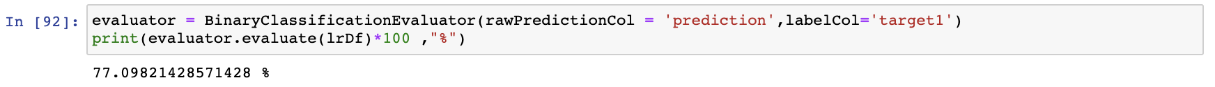 evaluatorBinaryClassificationEvaluator를 이용해서 얼마나 정확한 확률로 예측했는지 확인해 보도록 하겠습니다.